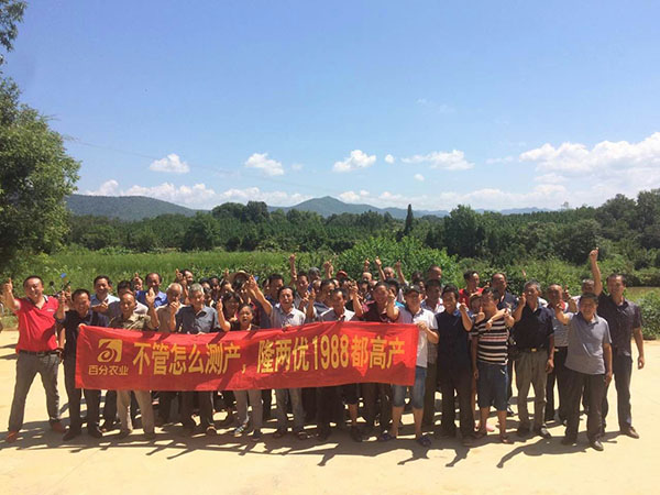 田間觀摩后,農(nóng)戶們紛紛來到會場,百分農(nóng)業(yè)的胡經(jīng)理介紹了財神稻隆兩優(yōu)1988的品種栽培技術,經(jīng)過實地觀摩后大家表示財神稻高抗倒、抗高溫、高結實率,是一個放心的大品種,紛紛找零售商李總訂購。這次會議共共訂購900余斤財神稻種子。