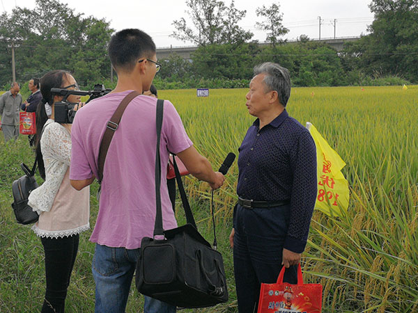 代理商郭總陪同農(nóng)業(yè)局領(lǐng)導(dǎo)和專(zhuān)家在財(cái)神稻的田塊看了一遍,對(duì)財(cái)神稻的表現(xiàn)十分認(rèn)可,同時(shí)電視臺(tái)記者對(duì)當(dāng)?shù)氐姆N植大戶進(jìn)行了采訪,看見(jiàn)一片片金黃黃的稻谷,種植戶的臉上洋溢著笑容和自豪。