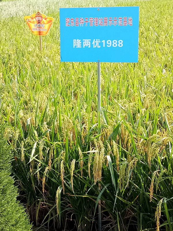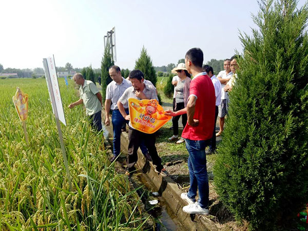 2017年9月12號(hào),肥東縣代理商方總和肥東縣包公鎮(zhèn)零售商黃老板及十幾位種田大戶前去示范田參觀財(cái)神稻隆兩優(yōu)1988。