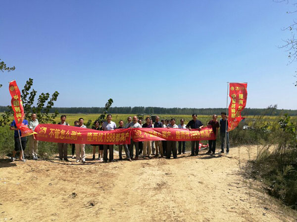 2017年9月14日,天朗氣清,在霍邱縣五塔鎮(zhèn)林義杰的一千畝隆兩優(yōu)1988的展示田,一場零售商測產觀摩會即將開始,而參與本次會議的并不是來自霍邱,而是來自霍山?;羯降亩涣闶凵桃坏降仡^上便迫不及待地查看財神稻的長勢,是否像傳說中的那樣全程高溫都不怕!去年和今年,霍邱縣都出現(xiàn)了極端的高溫天氣,恰好是在抽穗的敏感期上,大部分品種都出現(xiàn)了不同程度結實率降低的現(xiàn)象,抗高溫能力是農戶和零售商選種的重中之重。而財神稻不負眾望,沉甸甸的穗子謙虛地彎腰低頭,結實率高達百分之九十以上,籽黃葉青。后期連續(xù)的陰雨天氣,也沒有出現(xiàn)穗發(fā)芽和倒伏的現(xiàn),霍山的財神們嘖嘖稱贊,在今年極端的高溫和連續(xù)的陰雨下,財神稻表現(xiàn)極佳。